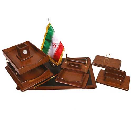 Wooden table set of 9 pieces code 185 دسته بندی: سایر لوازم اداری و رومیزی، ست مدیریتی رومیزی