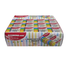 پاک کن مدل کرونا از پاک کن های با طرح ای محبوب و پرطرفدار است که در عین ساده بودن شیک می باشد و این ویژگی است که در دل مرد جا باز کرده است. این پاک کن دارای چند رنگ در یک عدد می باشد که شباهت به رنگین کمان دارد. ابعاد این پاک کن 30x15x10 میلی متر ، وزن آن 9 گرم است که از جنس جامد می باشد و در هر بسته ای که خریداری میکنید 36 عدد پاک کن وجود دارد